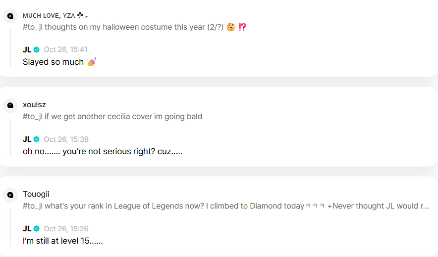 Categories JL UPDATES October 26 2025 – JL Updates Post author By AHOF JAEYEL Post date October 27, 2025 October 26, 2025 Dance, dance, dance, dance See post here… Or watch it here… … see post here … PREV NEXT Share this: Share on X (Opens in new window) X Share on Facebook (Opens in new window) Facebook Tags ahof, ahofjl, jlgaspar ← October 25 2025 – JL Updates → AHOF’s JL Gaspar Shares Justin Bieber ‘Confident’ Dance Cover